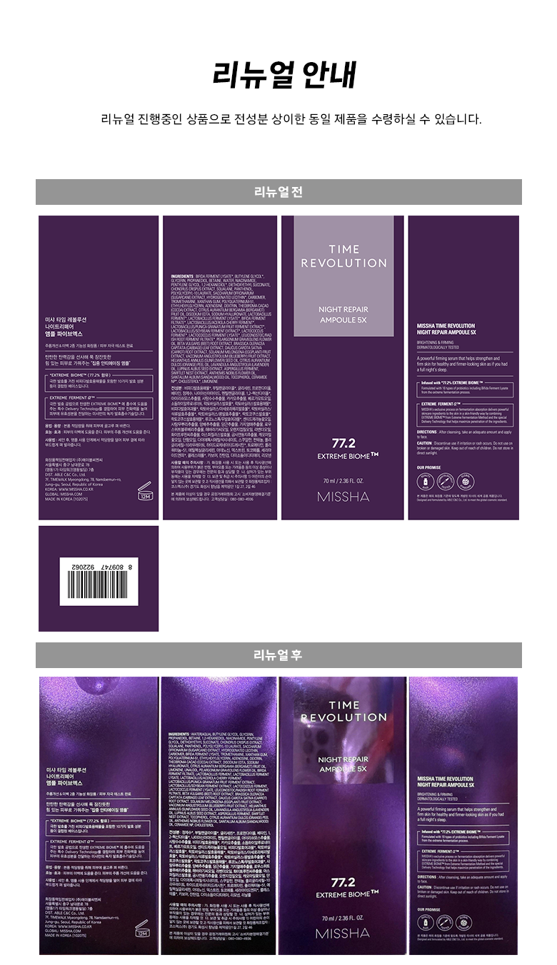 Missha Time Revolution Night Repair Ampoule 5X, 70ml, 1 unit Authentic K-Beauty