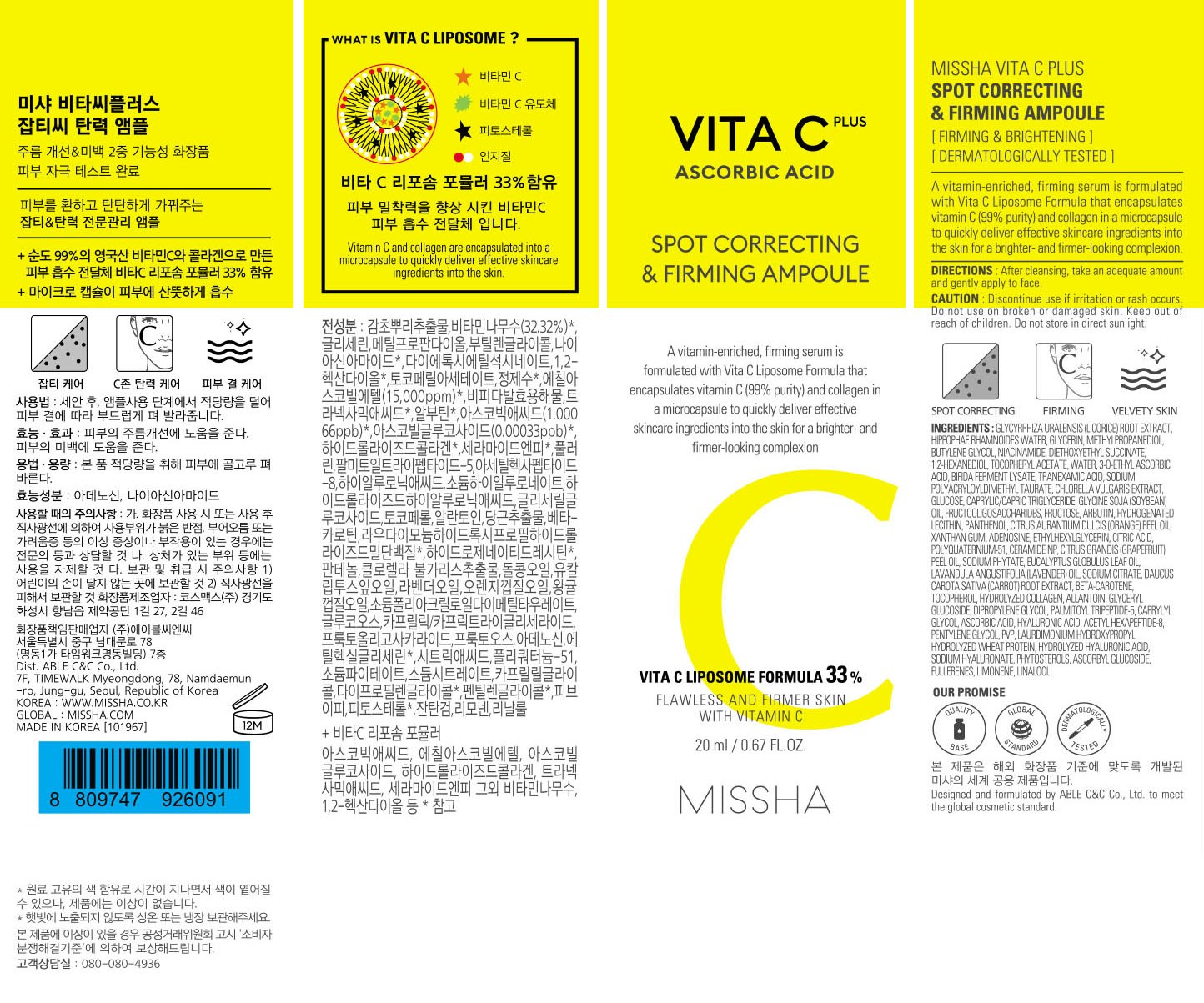 Missha Vita C Plus Blemish C Elasticity Ampoule 20ml + 15ml, 1 set Authentic K-Beauty